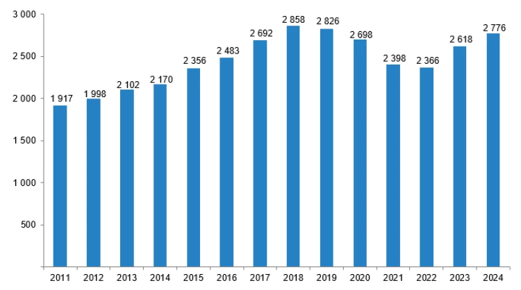 Kültür ve Turizm Bakanlığı ile Devlet Tiyatroları ve Opera Balesi Genel Müdürlüklerinin idari kayıtlarına dayanan verilere göre; 2024'te sinema salonu sayısı yüzde 6 artarak 2 bin 776'ya, koltuk sayısı 317 bin 274'e yükseldi. Toplam 736 film vizyona girerken (295 yerli, 441 yabancı), seyirci sayısı yüzde 4,9 artışla 32 milyon 538 bin 289'a ulaştı. Yerli film seyircisi yüzde 34,7 artarak 18,5 milyon, yabancı film seyircisi ise yüzde 18,6 azalarak 14 milyon oldu.