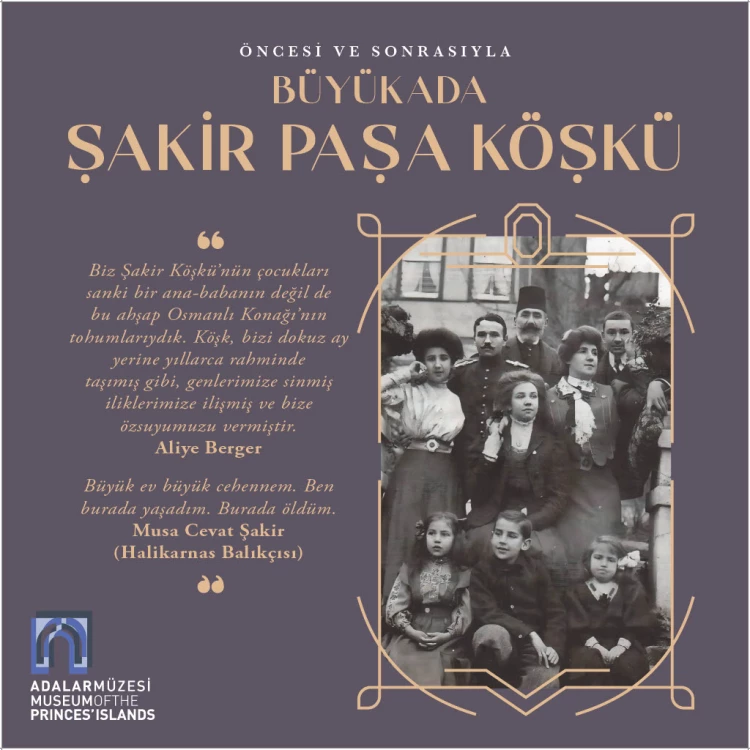 20.yüzyılın hemen başlarında, 1900 yılında Büyükada'ya taşınan Şakir Paşa Ailesi'nin yaklaşık yetmiş beş yıl yaşadıkları Şakir Paşa Köşkü, Adalar Müzesi'nin yeni sergisine konu oluyor.