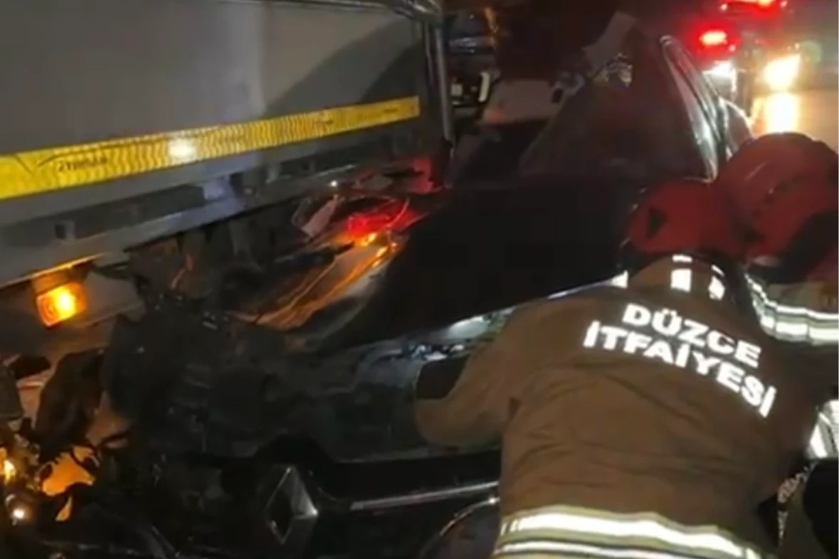 Sefer DEMİR / DÜZCE (İGFA) - Anadolu Otoyolu Düzce kesiminde U.T. idaresindeki 34 KHF 025 plakalı otomobil, İstanbul istikametinde seyrederken, otoyolun Düzce mevkisinde, aynı istikamette seyir halinde olan A.Y. yönetimindeki 19 ADV 984 plakalı tıra çarptı.