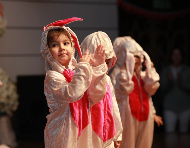 ANKARA (İGFA) - Ankara'da kutlamalarda Gül Adası, Ata ve Gülücük Çocuk Gelişim Merkezi'nin minik öğrencileri 23 Nisan'a özel hazırladıkları gösterileri coşkuyla sergiledi. Neşet Ertaş Kültür Merkezi'nde gerçekleşen kutlama Onuncu Yıl Marşı ritim gösterisiyle başlarken Karadeniz yöresi gösterilerinden potporiye, zeybekten Kafkas oyunlarına kadar birbirinden renkli gösteriler salondakilerden büyük alkış aldı. Koro halinde seslendirdikleri şarkılarla doyasıya eğlenen çocuklara eğitmenleri ve aileleri de eşlik etti.