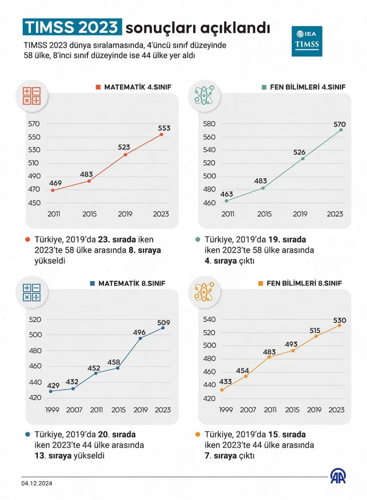 ANKARA (İGFA) - Hazine ve Maliye Bakanı Mehmet Şimşek, sosyal medya hesabından yaptığı paylaşımda, Uluslararası Matematik ve Fen Eğilimleri Araştırması'nın (TIMSS) sonuçlarına ilişkin değerlendirmede bulundu.