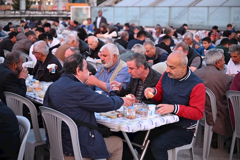 Büyükşehir Belediyesi iştiraklerinden olan BELSOS tarafından Kapalı Çarşı üzerinde düzenlenen 1000 kişilik iftar yemeğine 7'den 70'e vatandaşlar katılım sağladı.