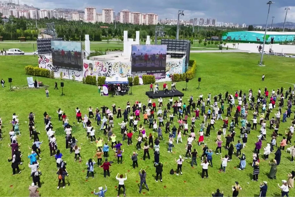 Spor ve dayanışmayı birleştiren bu büyük buluşma, kadınların enerjisiyle Başkent'i coşturdu. Katılımcılar, profesyonel eğitmenler eşliğinde aerobik hareketlerini senkronize bir şekilde gerçekleştirerek rekor denemesi yaptı.