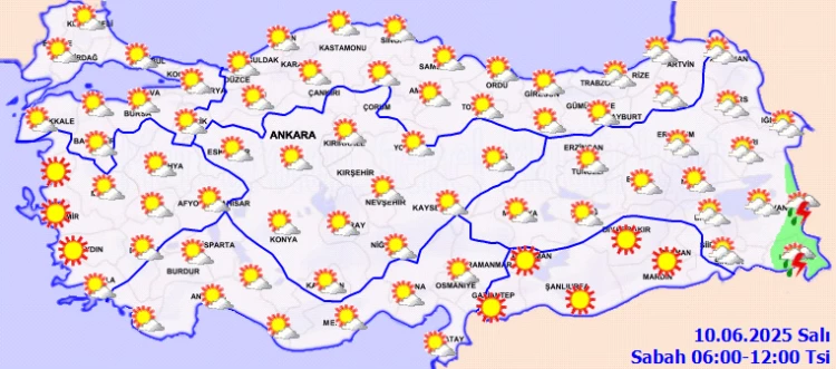 ANKARA (İGFA) - Meteoroloji Genel Müdürlüğü 10 Haziran Salı gününe ilişkin hava tahmin raporunu yayımladı.