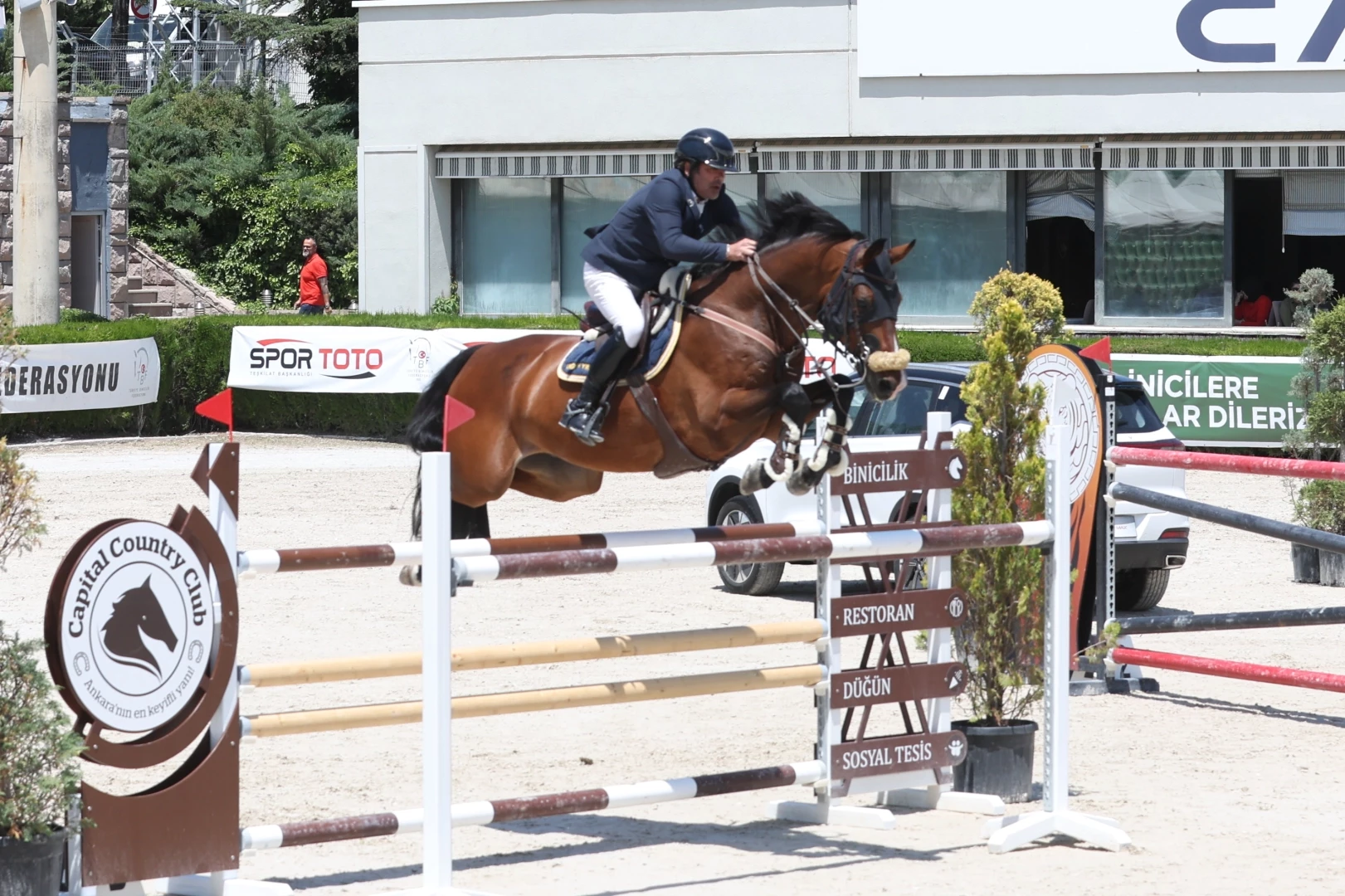 Başkent Binicilik Kulübü'nde yapılan 145 santimetre engel atlama yarışmasında Richard Grom, "Siec Bachelor" isimli atıyla birinciliği elde etti.