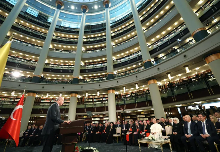 Türkiye'nin üç kıtanın kesişim noktasında yer alan özel konumuna vurgu yapan Cumhurbaşkanı Erdoğan, ülkenin farklı kültür ve inançların birlikte yaşadığı tarihi bir mirasa sahip olduğunu hatırlattı. "Bin yıldır bu topraklarda her din ve kökenden insanlar özgürce yaşamıştır" diyen Cumhurbaşkanı Erdoğan, 2002'den bu yana 100'e yakın kilise, manastır ve ibadethanenin restore edildiğini, yıl sonuna kadar beş eserin daha ibadete açılacağını açıkladı.
