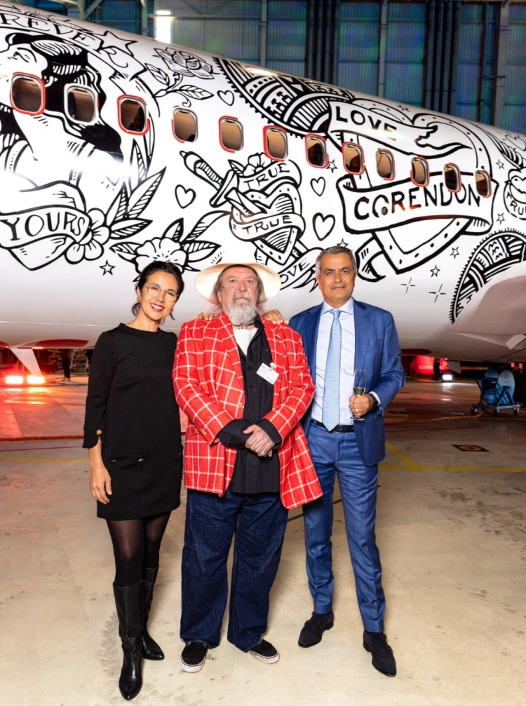 Dövme tasarımlı uçak fikri, Corendon Dutch Airlines CEO'su Günay Uslu ile Henk Schiffmacher arasındaki bir sohbet sırasında ortaya çıkmıştı. Schiffmacher'in yıllar önce dile getirdiği tamamen dövme tasarımlı uçak hayali gerçeğe dönüştü.