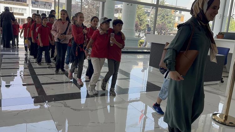 Adliye binasını gezen minikler, duruşma salonunu inceleyerek mahkeme ortamını yerinde gözlemledi.