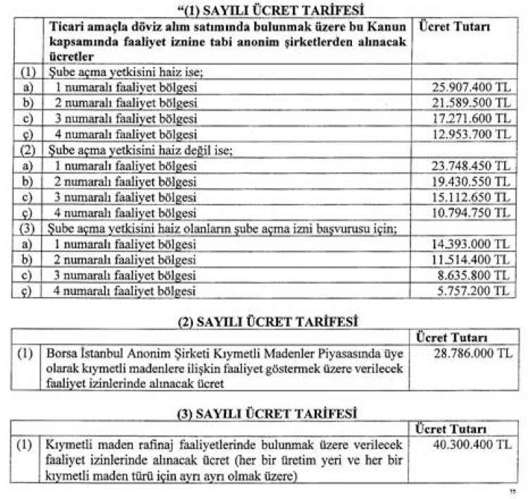 Döviz, kıymetli maden ve rafinaj faaliyetleri için Hazine ve Maliye Bakanlığı'ndan izin zorunlu; ücret tarifeleri belirlendi.