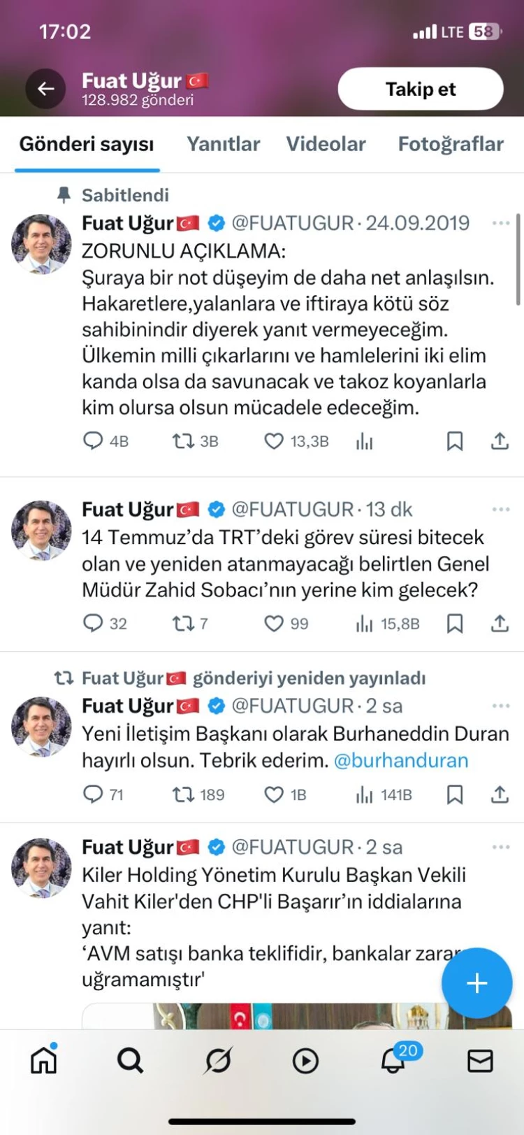 ANKARA (İGFA) - Gazeteci Fuat Uğur, sosyal medya hesabı üzerinden yaptığı paylaşımda, Dışişleri Bakan Yardımcısı olan Burhanettin Duran'ın 7 yıldır Cumhurbaşkanlığı İletişim Başkanı olarak görevde bulunan Prof. Dr. Fahrettin Altun'un yerine atandığını iddia etti.