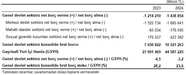 Genel devlet konsolide brüt borç stokunun GSYH'ye oranı, 2024'te yüzde 23,6'ya gerileyerek olumlu bir seyir izledi. Veriler, mali disiplinin güçlendiğini ve borç yükünün azaldığını gösteriyor.