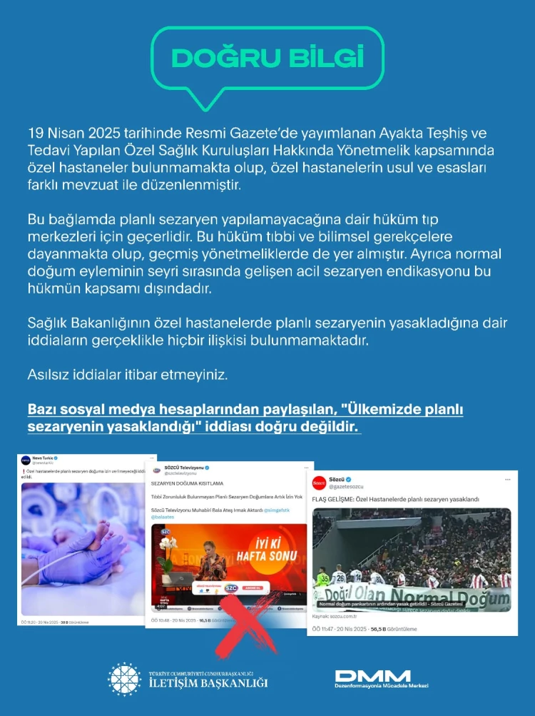ANKARA (İGFA) - Ülkemizde planlı sezaryenin yasaklandığı iddiasına ilişkin açıklama İletişim Başkanlığı'ndan geldi.