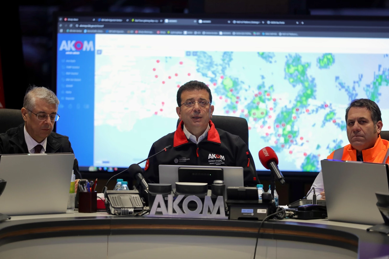 Türkiye Belediyeler Birliği ve İstanbul Büyükşehir Belediye Başkanı Ekrem İmamoğlu, kentte yaşanan olumsuz hava koşullarına karşı yapılan mücadeleye AKOM'da tanıklık etti.