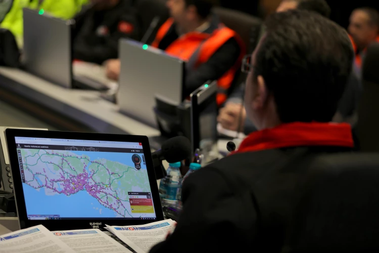 İSTANBUL (İGFA) - İstanbul'da yaşanan olumsuz hava koşullarına karşı yapılan mücadeleye Afet Koordinasyon Merkezi'nde (AKOM) tanıklık eden İstanbul Büyükşehir Belediye Başkanı Ekrem İmamoğlu, kurmaylarından ve uzman isimlerden bilgi aldı.