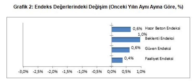 Geride bırakılan Kasım ayında tüm endeksler geçen yılın aynı ayına göre artış gösterdi. En fazla yükseliş Beklenti Endeksi'nde iken en az artış Faaliyet Endeksi'nde yaşanmıştır. Güven Endeksi'nde ise ılımlı bir artış gözlenirken, tüm endekslerdeki yükseliş birleşik Beton Endeksi'ni de yukarı çekti.