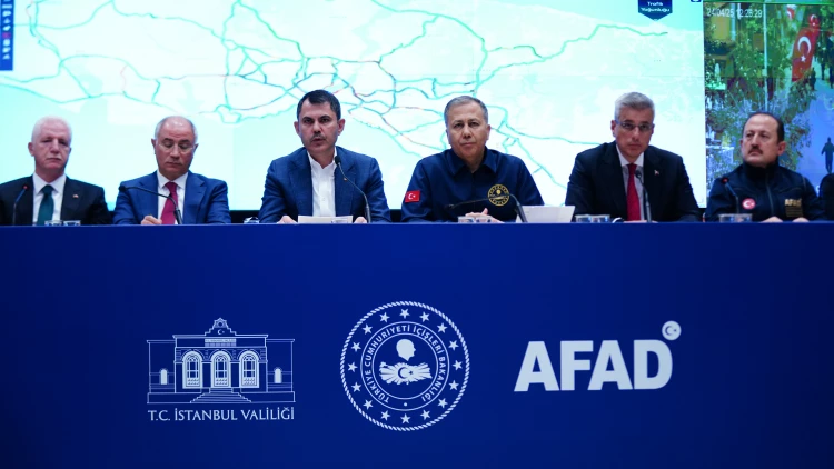 İSTANBUL (İGFA) - Çevre, Şehircilik ve İklim Değişikliği Bakanı Murat Kurum, İçişleri Bakanı Ali Yerlikaya ve Sağlık Bakanı Kemal Memişoğlu, İstanbul Valisi Davut Gül, AK Parti Genel Başkan Vekili Efkan Ala ve İstanbul Büyükşehir Belediye Başkan Vekili Nuri Aslan ile birlikte Afet Koordinasyon Toplantısı'na katıldı. Toplantının ardından AFAD Koordinasyon Merkezi'nde basın açıklaması yaptı.