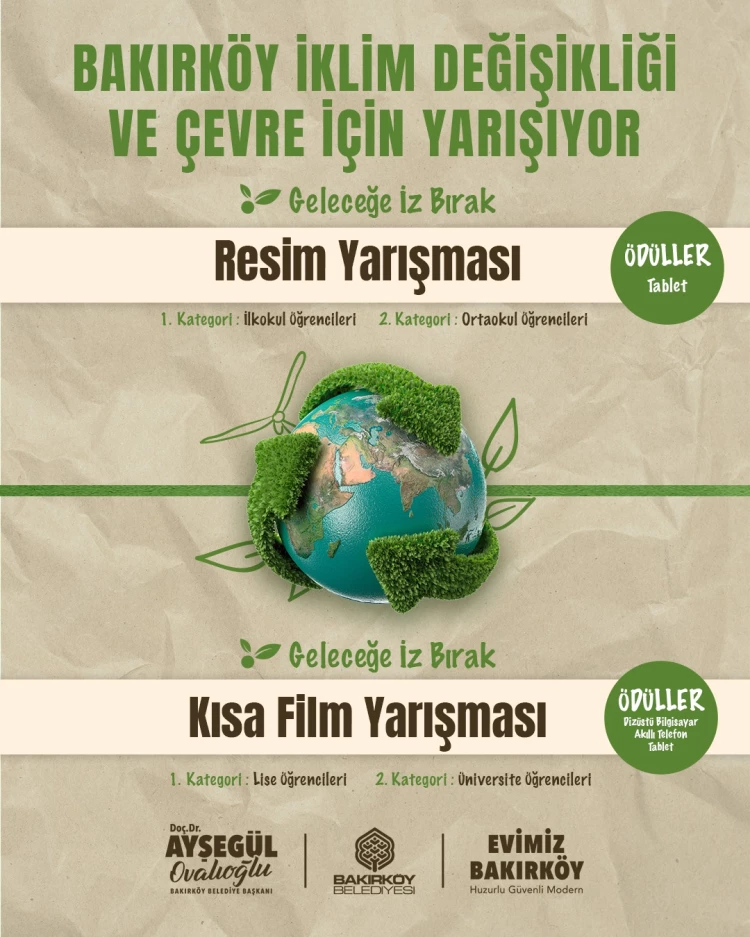 İstanbul Bakırköy Belediyesi, Dünya Çevre Günü etkinlikleri kapsamında ilçe genelindeki ilkokul ve ortaokul öğrencilerine resim, lise ve üniversite öğrencilerine kısa film yarışması düzenliyor. "Geleceğe İz Bırak" temalı yarışmaların sonucunda başarı elde eden öğrencilere ödül verilecek.