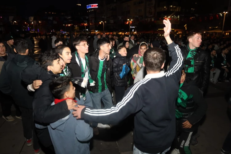 Kocaeli Büyükşehir'in İzmit Kent Meydanı'nda kurduğu dev ekrandan Adanaspor maçını izleyen yeşil-siyahlılar, 4-1'lik skorla gelen anlamlı galibiyetin keyfini yaşadı.