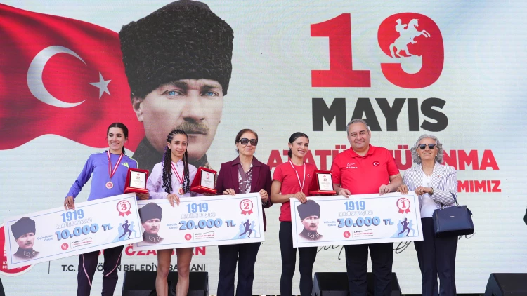 Geleneksel 19 Mayıs coşkusunu yeniden yaşatan koşuda, kadın ve erkek kategorilerinde birinciliği göğüsleyen koşuculara 30 bin, ikincilere 20 bin, üçüncülere 10 bin TL'lik para ödülü verildi.