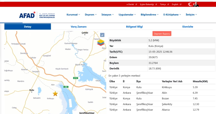 Konya'da 5,2 büyüklüğünde deprem meydana geldi. AFAD, gelişmeleri takip ediyor.