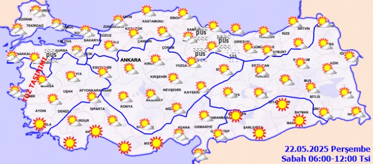 ANKARA (İGFA) - Meteoroloji Genel Müdürlüğü tarafından yapılan tahminlere göre, yurt genelinde yağış beklenmiyor. Yurdun kuzey kesimlerinin parçalı bulutlu, diğer yerlerin az bulutlu ve açık geçeceği tahmin ediliyor. Marmara'nın güneyi ile Orta Karadeniz kıyılarında yer yer sis ve pus hadisesi bekleniyor. Ege ve Marmara'da yer yer toz taşınımı görüleceği tahmin ediliyor.
