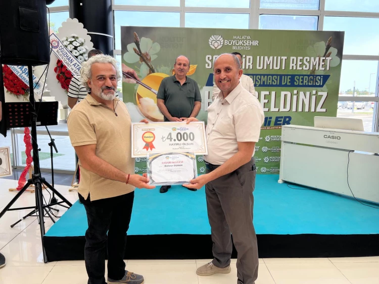 Malatya Büyükşehir Belediyesi'nin kayısı temasıyla düzenlediği "Sarı Bir Umut Resmet" adlı resim yarışmasında dereceye girenlere ödülleri verildi. Ödül alan ve sergilemeye değer görülen eserler, düzenlenen sergiyle sanatseverlerin ilgisine sunuldu.