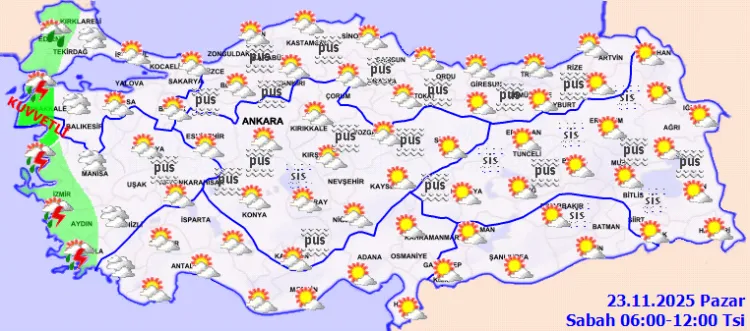 Gece ve sabah saatlerinde iç ve doğu kesimlerde pus ve yer yer sis görüleceği bildirildi.