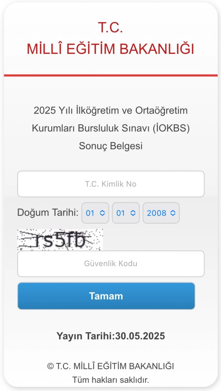 Milli Eğitim Bakanlığı'nın düzenlediği İlköğretim ve Ortaöğretim Kurumları Bursluluk Sınavı (İOKBS) sonuçları erişime açıldı. 1 milyondan fazla öğrencinin katıldığı sınavın sonuçları meb.gov.tr'de.