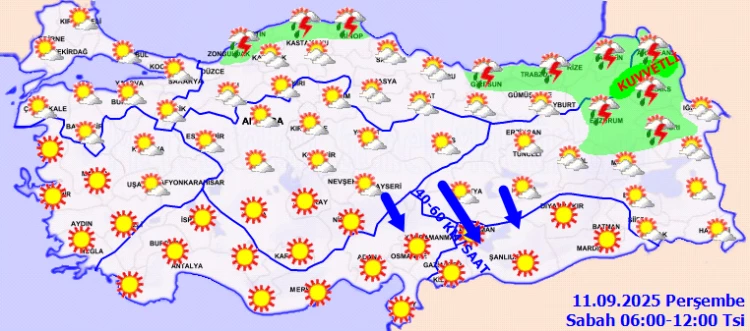 ANKARA (İGFA) - Meteoroloji Genel Müdürlüğü, 11 Eylül Perşembe gününe ilişkin hava tahmin raporunu yayımladı.