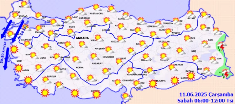 Meteoroloji Genel Müdürlüğü, özellikle Marmara'nın güneybatısı, Ege kıyıları, Güneydoğu Anadolu'nun kuzeyi ve Doğu Anadolu'nun batı kesimlerinde etkili olması beklenen kuvvetli rüzgarlara karşı dikkatli olunması gerektiğini belirtti.