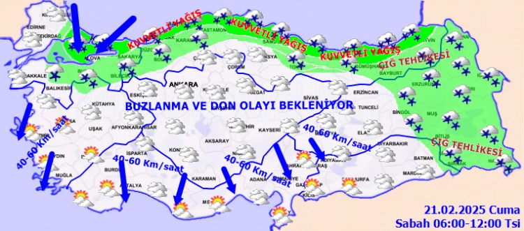 ANKARA (İGFA) - Meteoroloji Genel Müdürlüğü, 21 Şubat Cuma gününe ilişkin hava tahmin raporunu yayımladı.