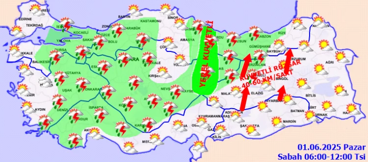 ANKARA (İGFA) - Meteoroloji Genel Müdürlüğü, 01 Haziran Pazar gününe ilişkin hava tahmin raporunu yayımladı.