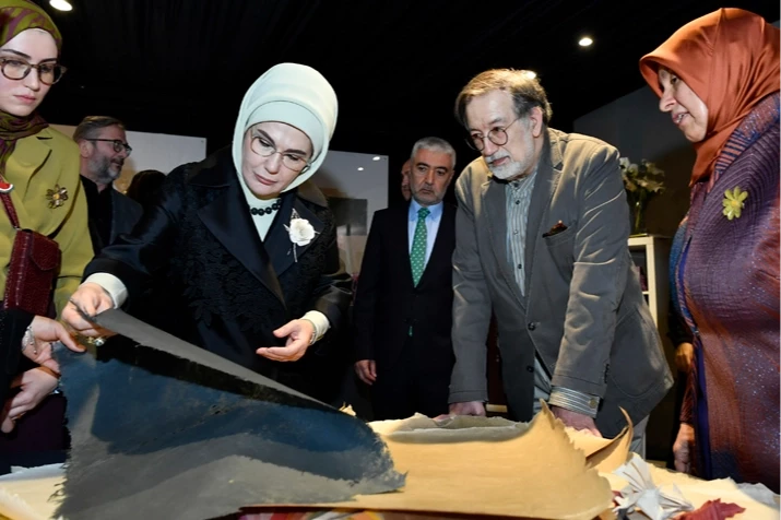 Açılış öncesinde Asitane Vakfı Başkanı Hasibe Nurhayat Turan, Emine Erdoğan'a sergi hakkında bilgiler verdikten sonra günün anısına atık kâğıtlardan yapılmış çiçek şeklinde broş hediye etti. Serginin açılışını kurdele keserek yapan Emine Erdoğan'a; Afşin Belediye Başkanı Koray Kıraç, Asitane Vakfı Başkanı Turan, Asitane Vakfı Başkan Yardımcısı Nuriye Doğusan ile ressam, konservatör ve restoratör Şule Alabacak eşlik etti.