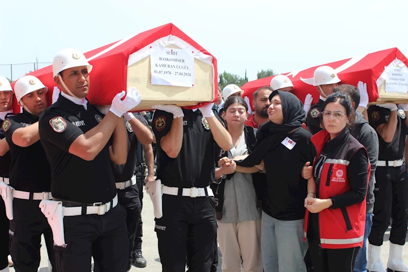 Şehit olan baş komiser Kamuran Üçgül ve ekipler amiri Gökhan Özer bugün Adıyaman İl Emniyet Müdürlüğü Abuzer Yıldırım ek hizmet binasının bahçesinde yapılan törenle memleketlerine uğurlandı.