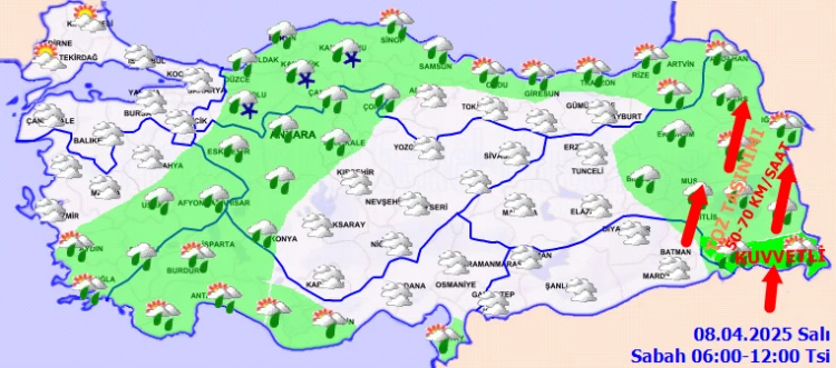ANKARA (İGFA) - Meteoroloji Genel Müdürlüğü, 8 Nisan Salı gününe ilişkin hava tahmin raporunu yayımladı.
