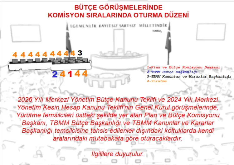 TBMM Genel Kurulu, 2026 Yılı Merkezi Yönetim Bütçe Kanunu Teklifi ile 2024 Yılı Kesin Hesap Kanunu Teklifi'nin görüşmelerine bugün (8 Aralık Pazartesi) başlıyor. Bütçe görüşmeleri 14 gün sürecek ve resmi tatiller dahil aralıksız devam edecek.