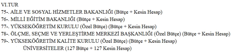 Programa göre 6'ncı turda yer alan kamu kurumları şöyle: