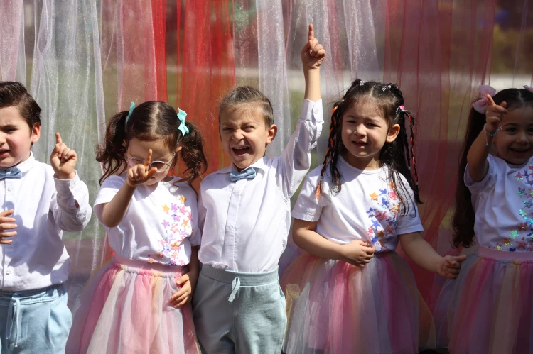 Daha sonra minikler; öğretmenleri ve sınıf ablaları ile birlikte hazırladıkları gösterileri, büyük bir heyecan ile sergilediler. Öğrencilerin, yaş gruplarına göre sıra ile öğretmenleri eşliğinde sergilediği gösteriler, birbirinden eğlenceli anlara sahne oldu.