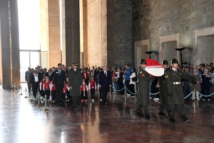 Saygı duruşu sonrasında TEGV adına Yönetim Kurulu Başkanı M. Özalp Birol çiçeklerden oluşan çelengi Atatürk'ün mozolesine bıraktı.