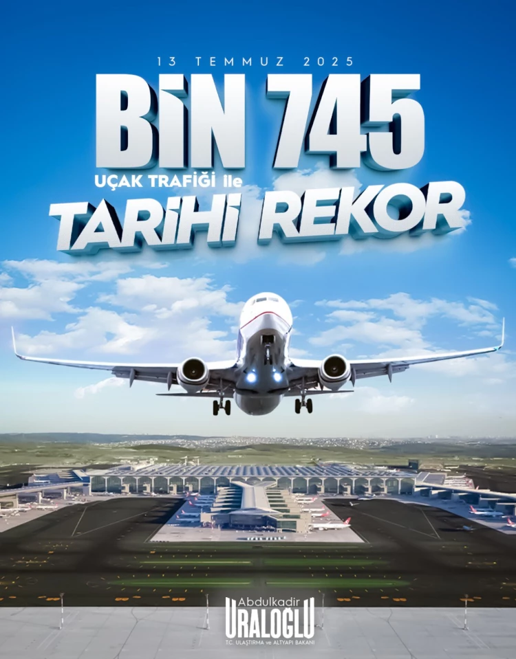 Bakan Uraloğlu, sosyal medya hesabından yaptığı paylaşımda, 13 Temmuz 2025'te bin 745 transit uçuşla tüm zamanların en yüksek günlük transit uçuş sayısına ulaşıldığını belirtti.