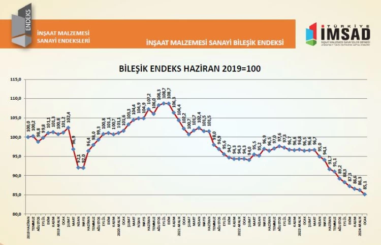 Türkiye İMSAD İnşaat Malzemesi Sanayi Bileşik Endeksi sonuçları açıklandı. Bileşik Endeks 2025 Ocak ayında 85,1 puan oldu
