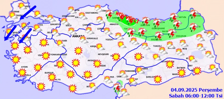 ANKARA (İGFA) - Meteoroloji Genel Müdürlüğü, 4 Eylül 2025 Perşembe gününe ilişkin hava tahmin raporunu yayımladı.