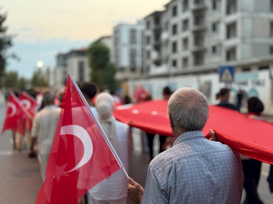 Sabah saatlerinde Adıyaman Şehitliği’nde başlayan programda, tüm şehitler için dualar edildi, kabirlerine karanfiller bırakıldı. Ardından ellerinde Türk bayraklarıyla kortej yürüyüşüne katılan vatandaşlar, Demokrasi Meydanı’na kadar yürüdü.