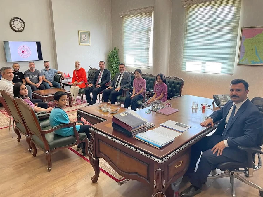 Başarılarıyla gurur kaynağı olan öğrenciler, öğretmenleri ve İlçe Millî Eğitim Müdürü Sayın Lütfü Başlı ile birlikte Kahta Kaymakamı Sayın Muhammed Üsame Soysal’ı makamında ziyaret etti.