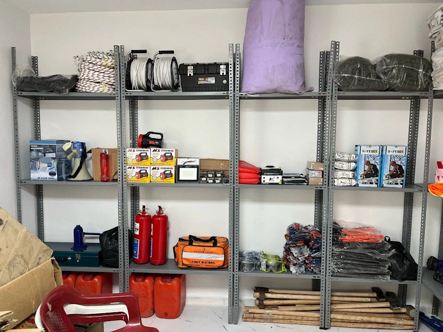 6 Şubat depremleri sırasında en fazla ihtiyaç duyulan ilk yardım ve destek malzemelerinin bulunduğu afet lojistik odasında aralarında jeneratör, portatif aydınlatma sistemleri, telsiz, temel arama-kurtarma ekipmanları, ilkyardım çantaları, battaniye, içme suyu ve diğer acil durum malzemelerinden oluşan toplam 62 kalem malzeme ve ekipman bulunuyor. Lojistik oda, mahalle sakinlerinin ihtiyaç duyabileceği ilk yardım ve koordinasyon desteğini sağlayacak şekilde hazırlandı.