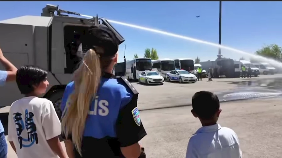 Programın ikinci bölümünde çocuklar, Çevik Kuvvet Şube Müdürlüğü’nü ziyaret ederek polis teşkilatını yakından tanıdı. Burada: