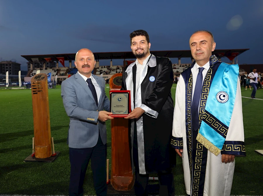 Ardından, üniversitenin çeşitli bölümlerini birincilikle bitiren öğrencilere başarı plaketleri ve hediyeleri takdim edildi. Plaketleri, Vali Varol, Belediye Başkanı Tutdere, Başsavcı Şahin ve Rektör Keleş öğrencilerle birlikte sahnede verdi.