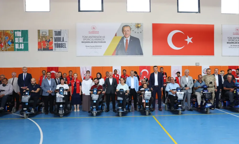 Adıyaman Valiliği himayelerinde, hayırsever iş insanı Harun Yurt ve değerli dostlarının katkılarıyla temin edilen 41 adet akülü engelli sandalye, düzenlenen programla depremzede vatandaşlara ulaştırıldı.