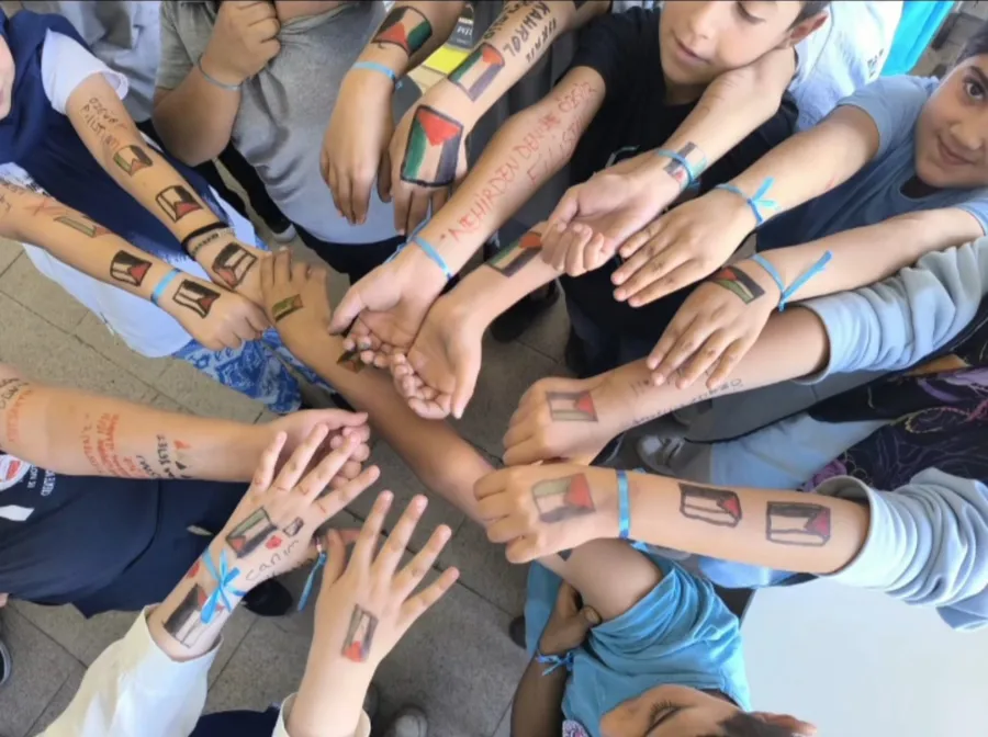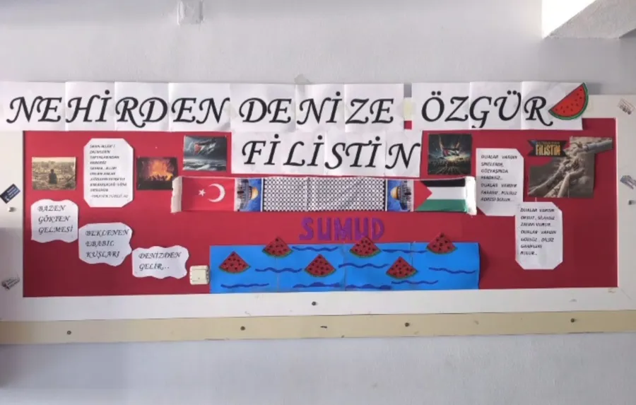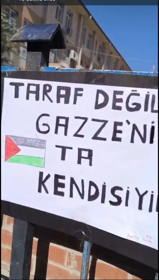 Adıyaman Merkez Polis Amca İmam Hatip Ortaokulu'nda öğrenciler ve öğretmenler, Filistin’e destek amacıyla anlamlı bir etkinliğe imza attı. Etkinlikte, “Filistin’in tarafı değil, Gazze'nin ta kendisiyiz” yazılı pankart büyük ilgi gördü.