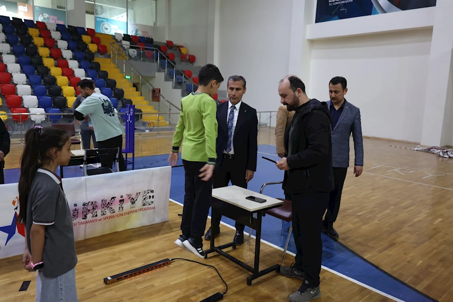 İl Müdürü Keleş, program dahilinde test ve ölçümleri yapılan sporcu adayı ilkokul 3. sınıf öğrencilerle bir araya gelerek sohbet etti.